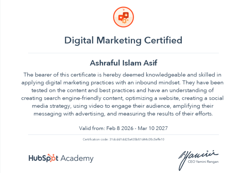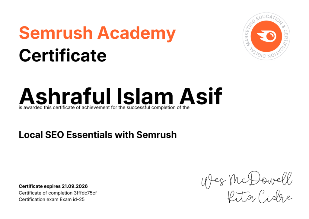 Ashraful Islam Asif is a dedicated Local SEO expert in Bangladesh with over 5 years of experience helping service-area businesses grow their visibility in local search. Based in Khulna, he specializes in Google Business Profile optimization, multi-location SEO, and citation management — working with both local Bangladeshi businesses and international clients across the US, UK, and Canada.
